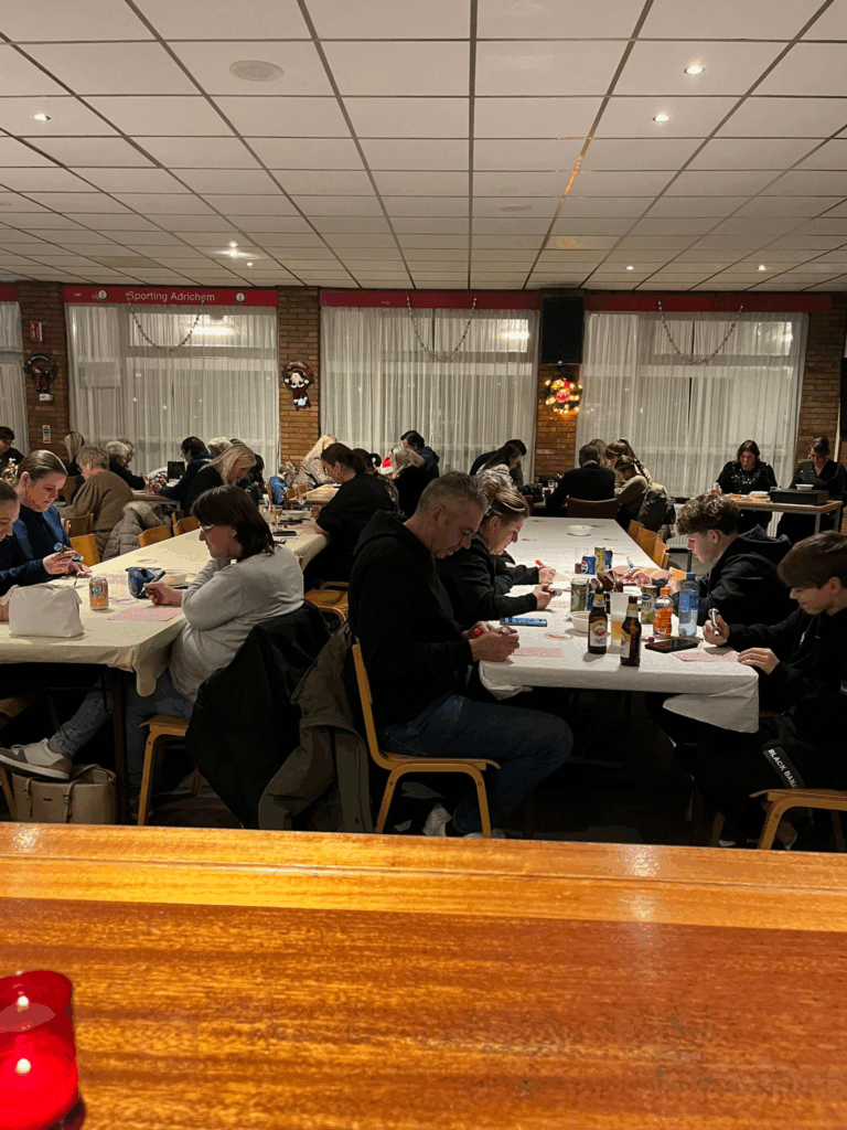 In een gezellige kantine , met een nagenoeg vergelijkbaar aantal deelnemers als in 2024, werd er flink bingo gespeeld om prachtige prijzen.